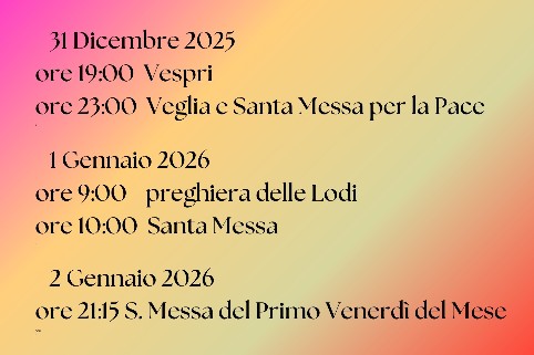 Il Santissimo è esposto sull'altare principale e più di 200 persone si alternano ogni settimana per adorarLo. Per saperne di più e per dare la tua disponibilità ad adorare Gesù Eucaristico per un'ora alla settimana clicca qui.