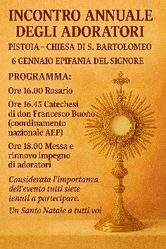 Il Santissimo è esposto sull'altare principale e più di 200 persone si alternano ogni settimana per adorarLo. Per saperne di più e per dare la tua disponibilità ad adorare Gesù Eucaristico per un'ora alla settimana clicca qui.